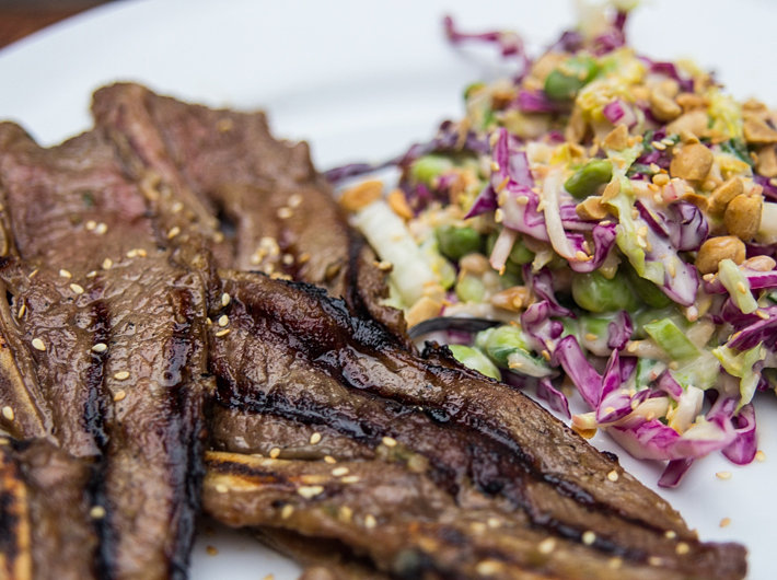 123D Beef short Ribs, Boneless (IM) (Boneless Beef Short Ribs) Grill skewers of marinated steak and brush with Southeast Asian-style sticky sauce. Serve with jasmine rice and a salad of greens, Thai basil, cilantro and mint, sprinkled with green onions, diced ... Return Document